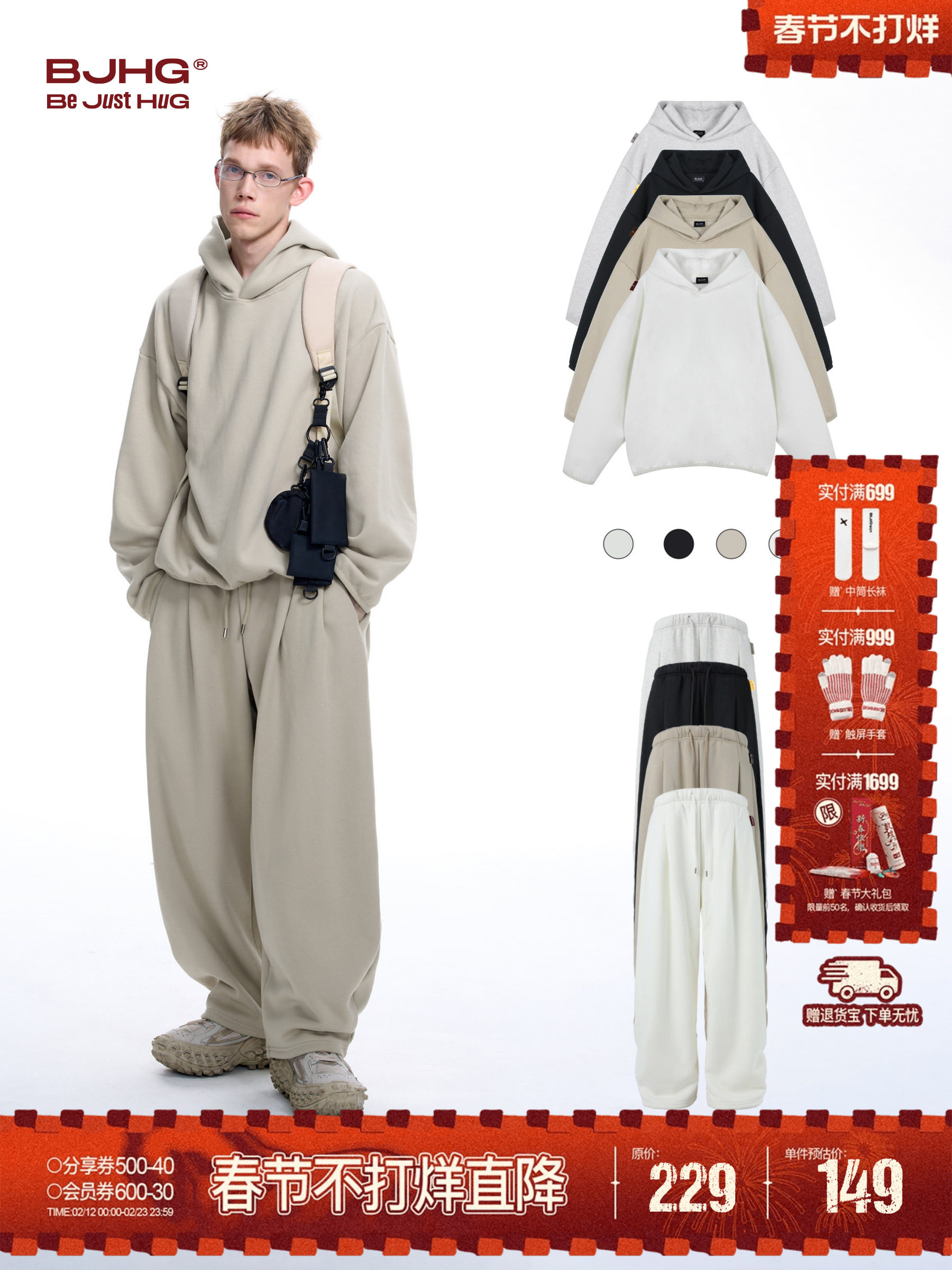 Mr. Vanset 2025 New Men's Casual Pants, Loose Wide-Leg Cartoon American Style Trendy Brand with Fleece Lining