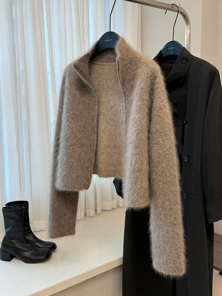 Coffee-Colored Mink Fur Knitted Sweater Thick Coat for Women 2025 New Popular Autumn and Winter Unique Super Nice Short Top