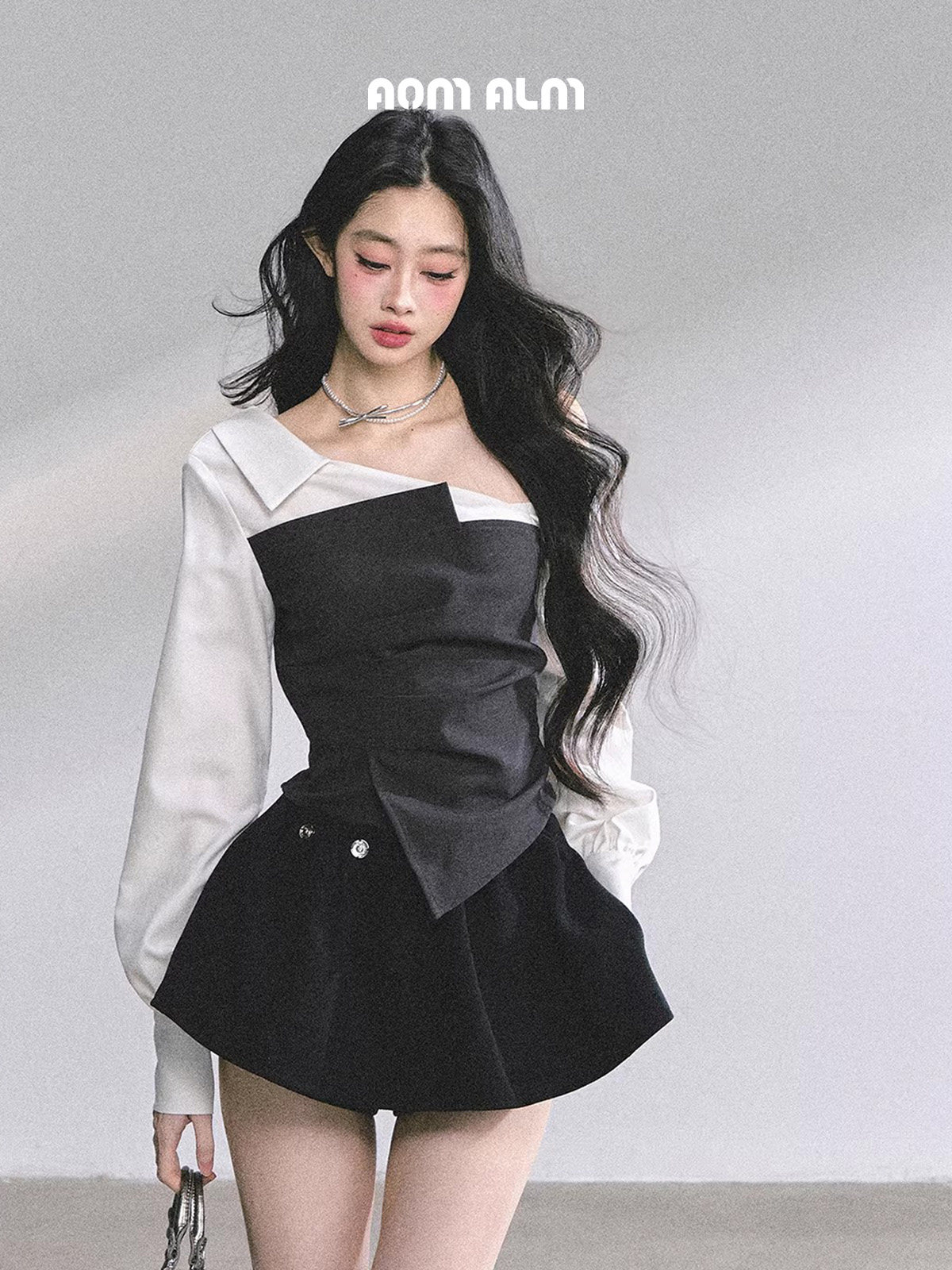 Aomalm Young Girl's "Gossip Senior Sister"% Fake Two-Piece Long-Sleeved French-Style Off-Shoulder Shirt for Women, Autumn Commuter Top