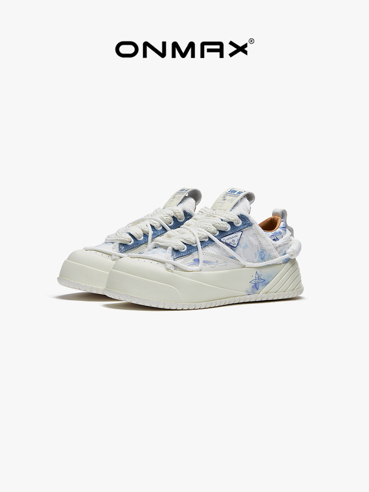 【Zhou Shen's Style】Onmax Blue and White Porcelain Paper Airplane Canvas Shoes Thick-Soled Height-Increasing Sports Spring Sneakers for Men and Women