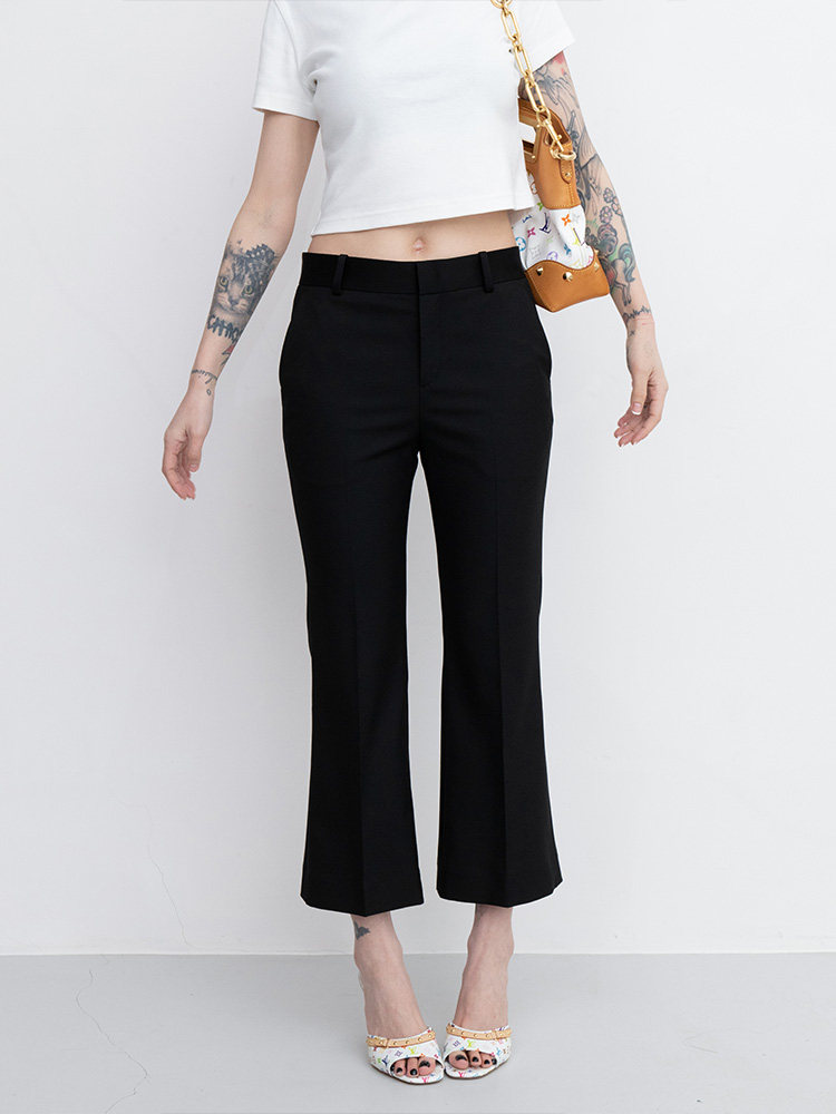 Filgood Black Cropped Trousers, Slimming Item, Slightly Stretchy Fabric, Fashionable for Work Fg02P02