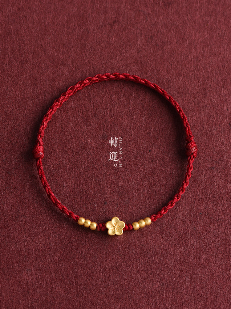 999 Pure Gold Peach Blossom Red String Bracelet for Men and Women, Pure Gold Fortune Bead, Good Luck in the Year of Birth, Hand-Woven Bracelet