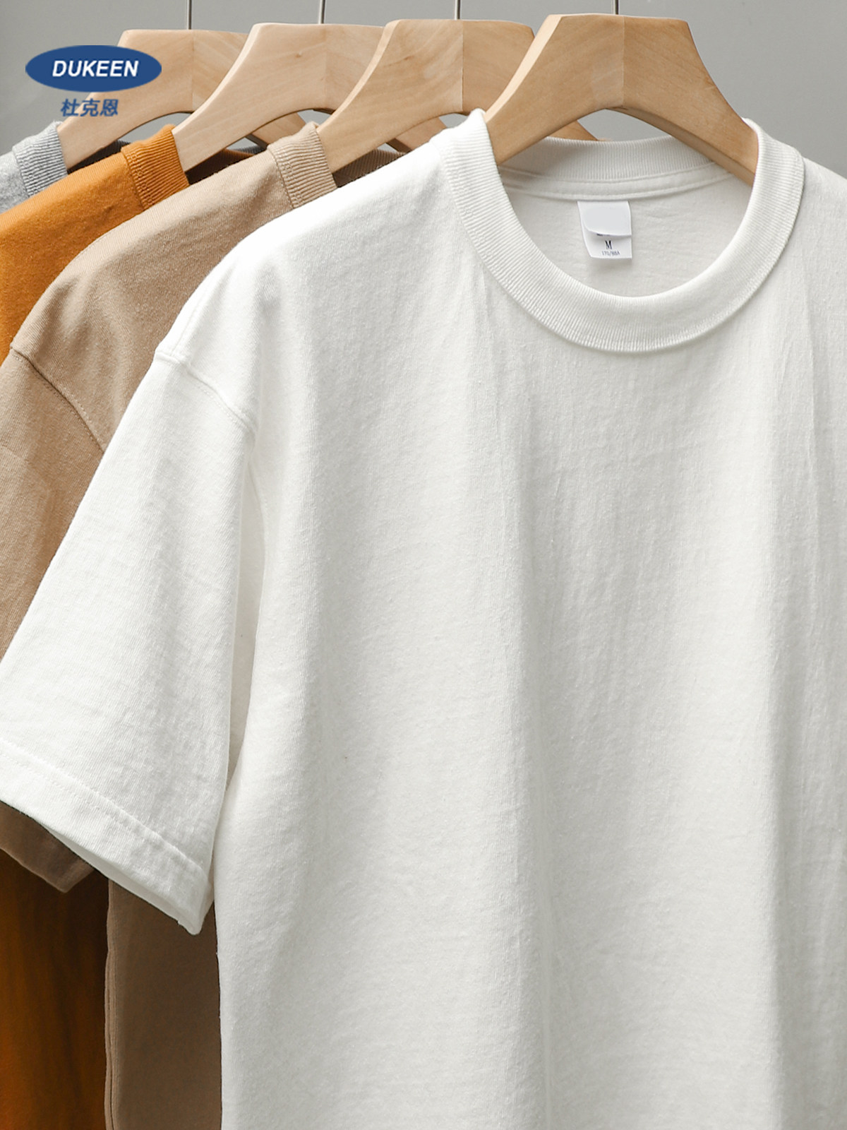 Dukeen American Style 320g Heavyweight Pure Cotton Short-Sleeve T-Shirt for Men, Summer Solid Color Half-Sleeve Three-Needle Base Shirt for Women