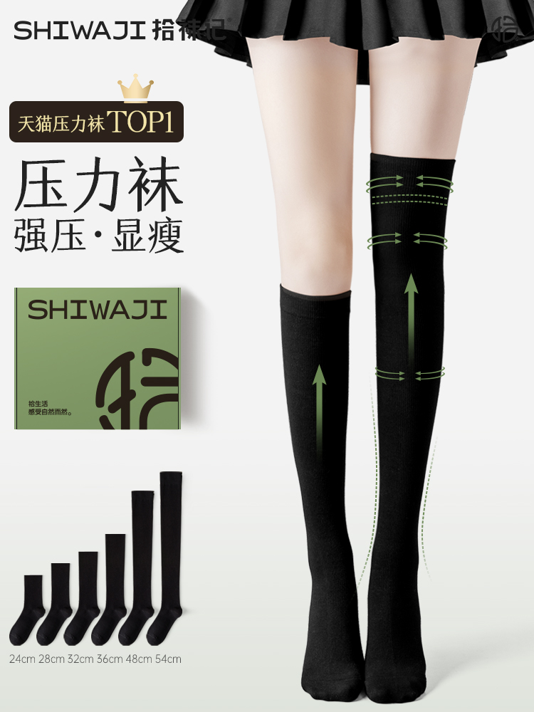 Compression Calf Socks for Women, Autumn and Winter, Strong Compression Slimming Mid-Calf Jk Socks, Long Socks, Over-The-Knee Socks, Non-Slip Black Long Socks