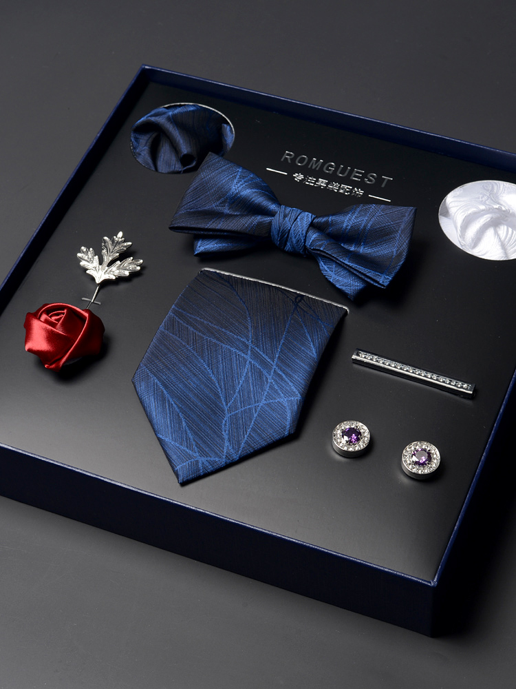 Blue Black Men's Tie and Bow Tie Set Gift Box Formal Business Birthday Gift for Boyfriend Husband Valentine's Day