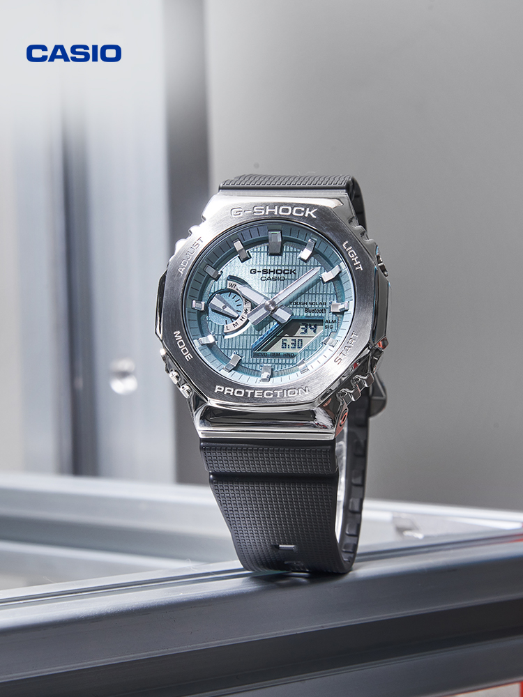 Casio Flagship Store Gbm-2100 Metal Octagonal Bluetooth Solar Bubble Wrap Sports Watch for Men G-Shock