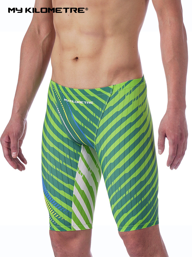 My Kilometre Dazz Professional Quick-Drying Five-Point Swim Trunks for Men, Long Training Racing Double Water Drainage