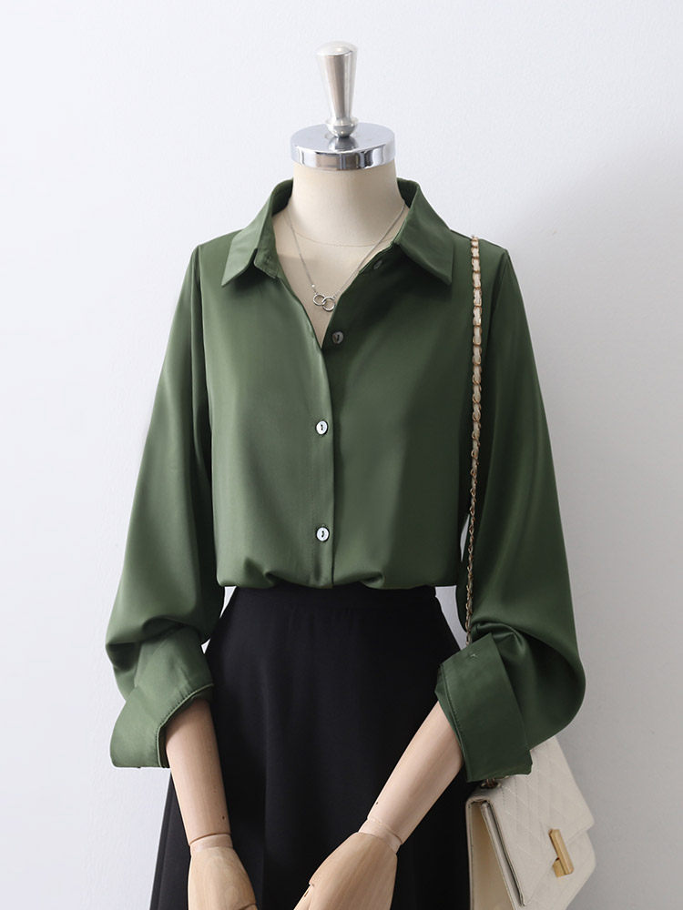 Retro Hong Kong Style Satin High-End Lapel Shirt for Women 2025 Spring & Fall Professional Work Clothing Draped Long-Sleeved Chic Top