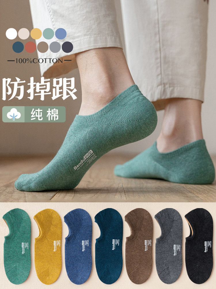 Men's Cotton No-Show Socks, Odor-Resistant, 7A Antibacterial, Autumn and Winter Style, Full Cotton, Non-Slip, Invisible Socks, Seamless