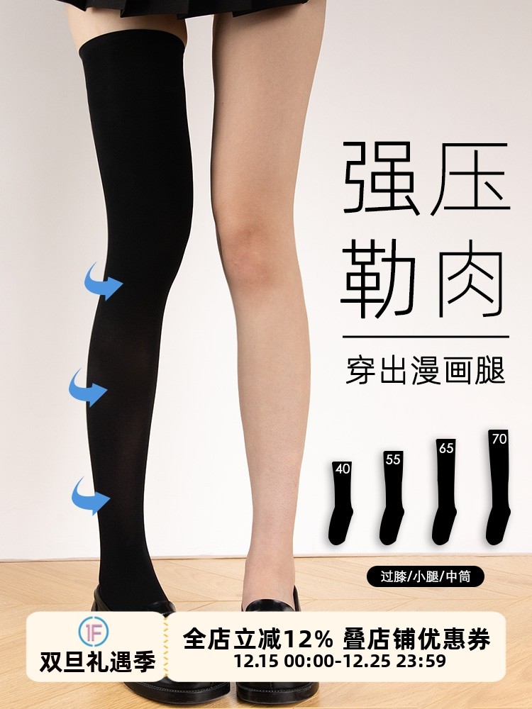 Arriving at the First Floor, I Found the "Leather-Like Texture" Black Over-The-Knee Socks, Pressure Slimming Leg Silicone Non-Slip Jk Pressure Summer Thin Long Socks