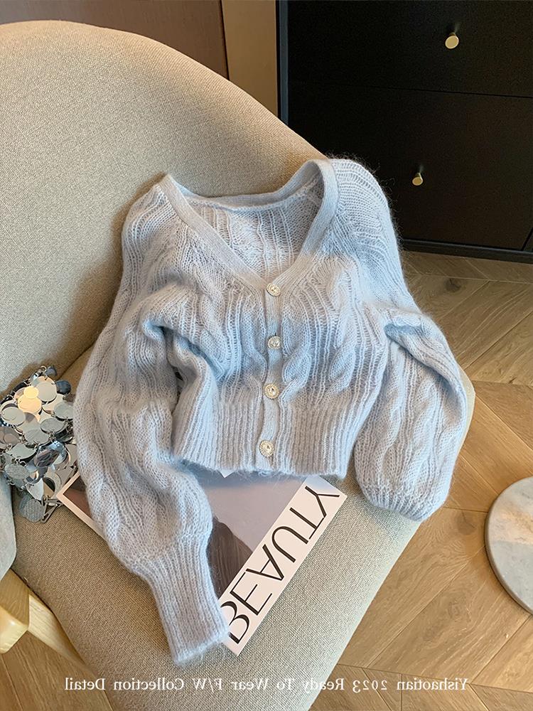 2025 Popular Women's V-Neck Soft Sweater Cardigan, Autumn Sweet Slim-Fit Short Knit Jacket