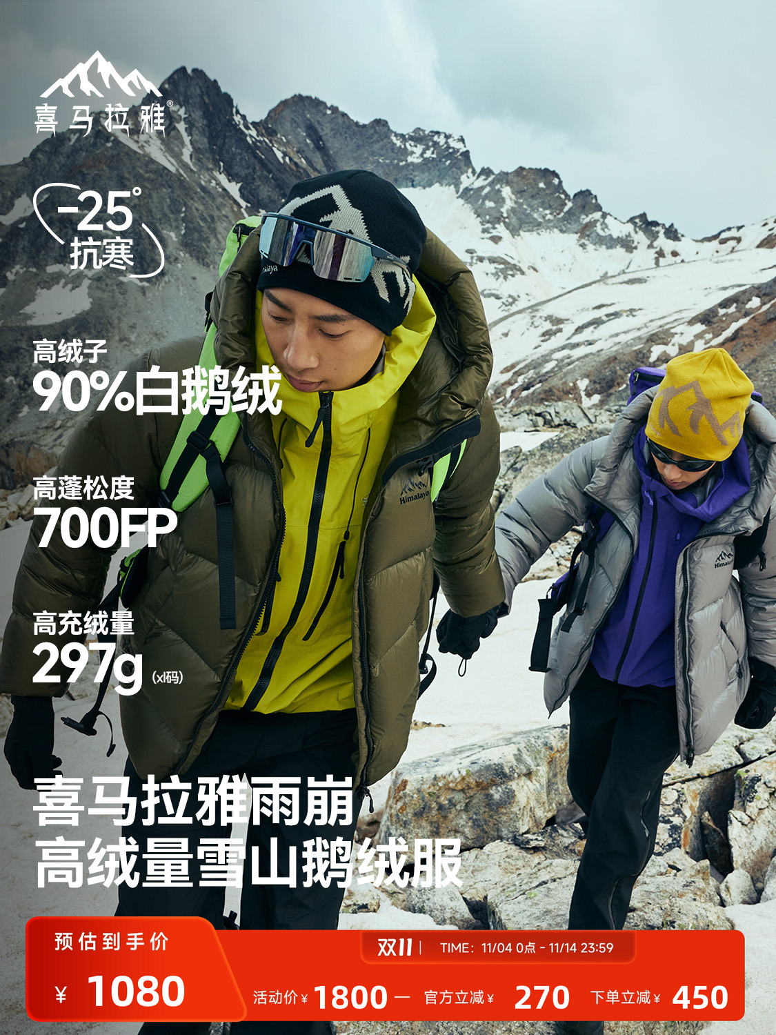 Himalaya Yubang down Jacket Outdoor Waterproof Windproof Warm Goose down Puffer Jacket Sports Hiking Coat for Men and Women