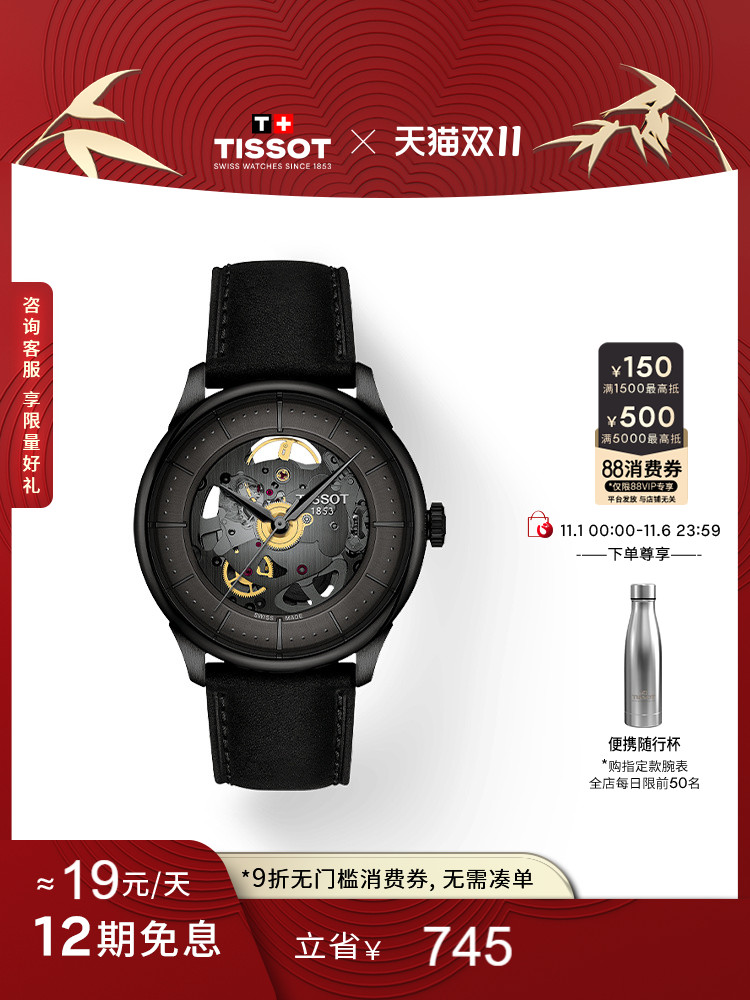 Tissot Official Dullure Skeleton Mechanical Leather Strap Watch