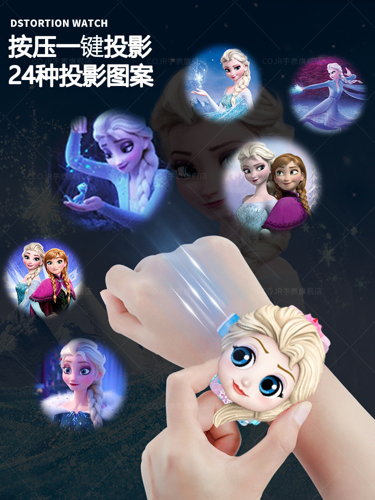 Children's Projection Toy Watch for Girls, Elsa Princess, Elementary School Girls, Waterproof, Only Tells Time, for Kids Aged 6-12