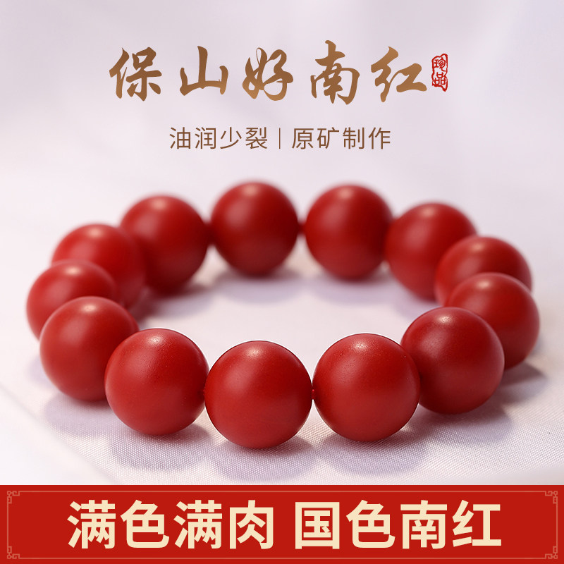 Pure Natural Baoshan Southern Red Agate Bracelet, Collector-Grade Single-Strand Agate Bracelet, Full Color, Full Flesh, Persimmon Red, Zodiac Year Prayer Beads