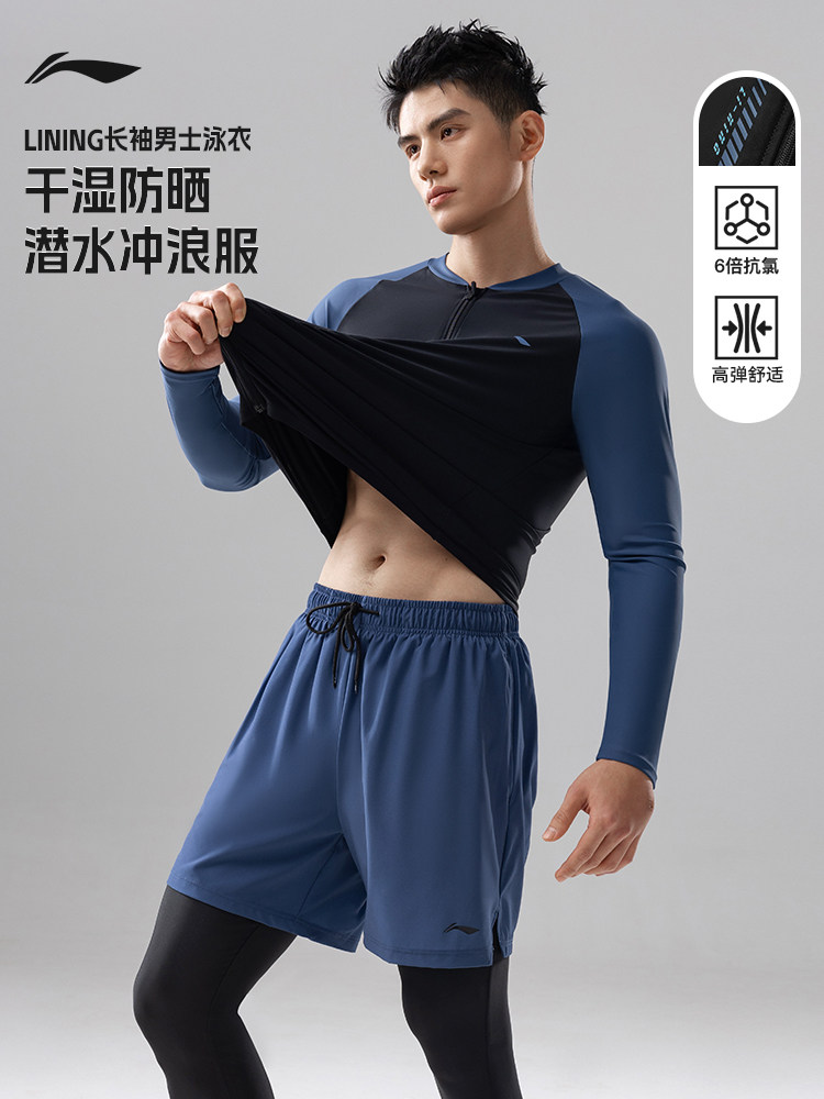 Li-Ning Jellyfish Suit Men's Swimwear Set Long-Sleeved Long Pants Winter Cold-Proof Hot Spring Men's Surfing Full-Body Snorkeling Suit