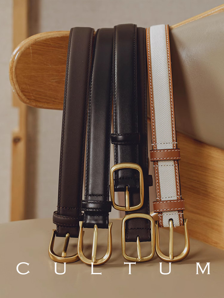 Cultum 2.5cm Casual Versatile Retro Belt for Men, Genuine Leather Pin Buckle, First Layer Pure Cowhide Belt for Young People