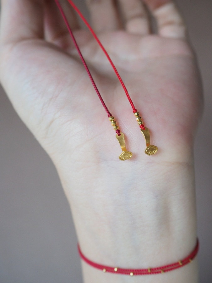 999 Pure Gold Red String Bracelet for the Year of Birth, Hand-Woven by a Master Craftsman, Fine Style, Adjustable