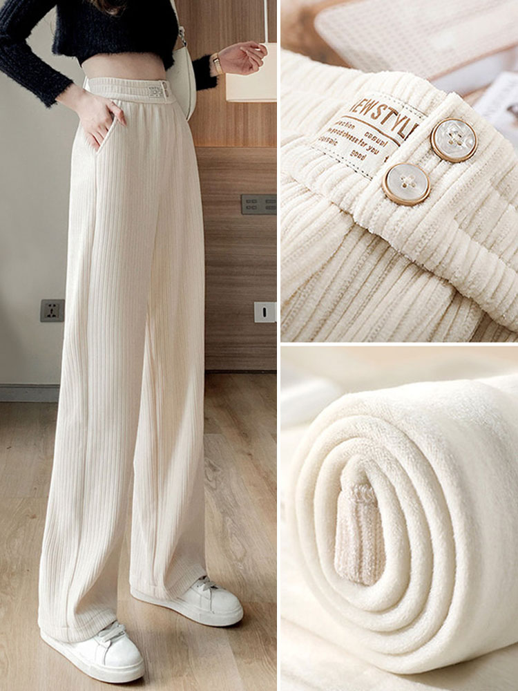 Clearance Sale on Surplus Chenille Wide-Leg Pants for Women, Fleece-Lined, Slimming, Body-Covering, Straight-Leg, Loose, Drapey Casual Pants