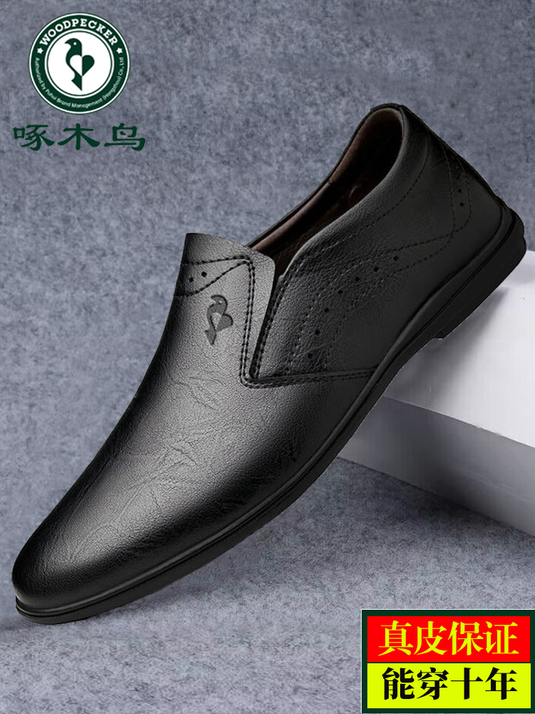 Woodpecker Genuine Leather Shoes for Men 2025 Spring Genuine Leather Men's Casual Shoes Slip-On Lazy Driving Shoes Loafers