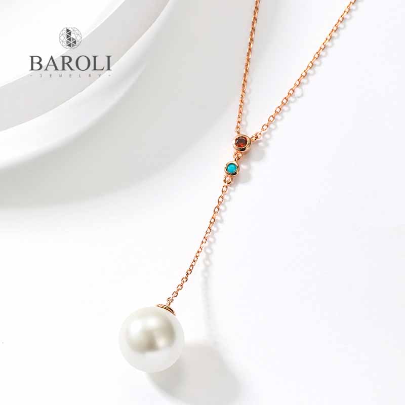 baroli S925 Silver Pearl Y-Shaped Chain for Women, Accessible Luxury Elegant, Adjustable Pearl Pendant, Clavicle Chain