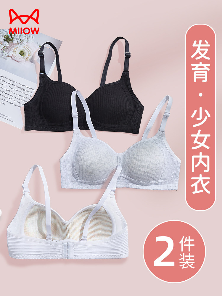 Cat Girl Underwear for Puberty Development Period, Small Chest Push-Up, College Students, Middle and High School Students, Pure Cotton Thin Bra