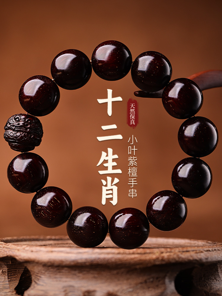 Official Flagship Store Small-Leaf Rosewood Bracelet for Men, Buddhist Prayer Beads, Zodiac Year Bracelet, Birthday Gift