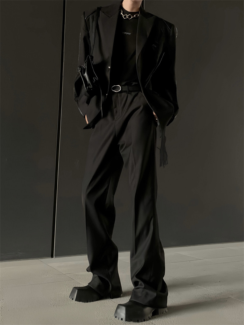 Ace' Niche Design Flared Dress Pants for Men, High-End Drape, High Street Vibe, Loose Straight-Leg Casual Scimitar Pants