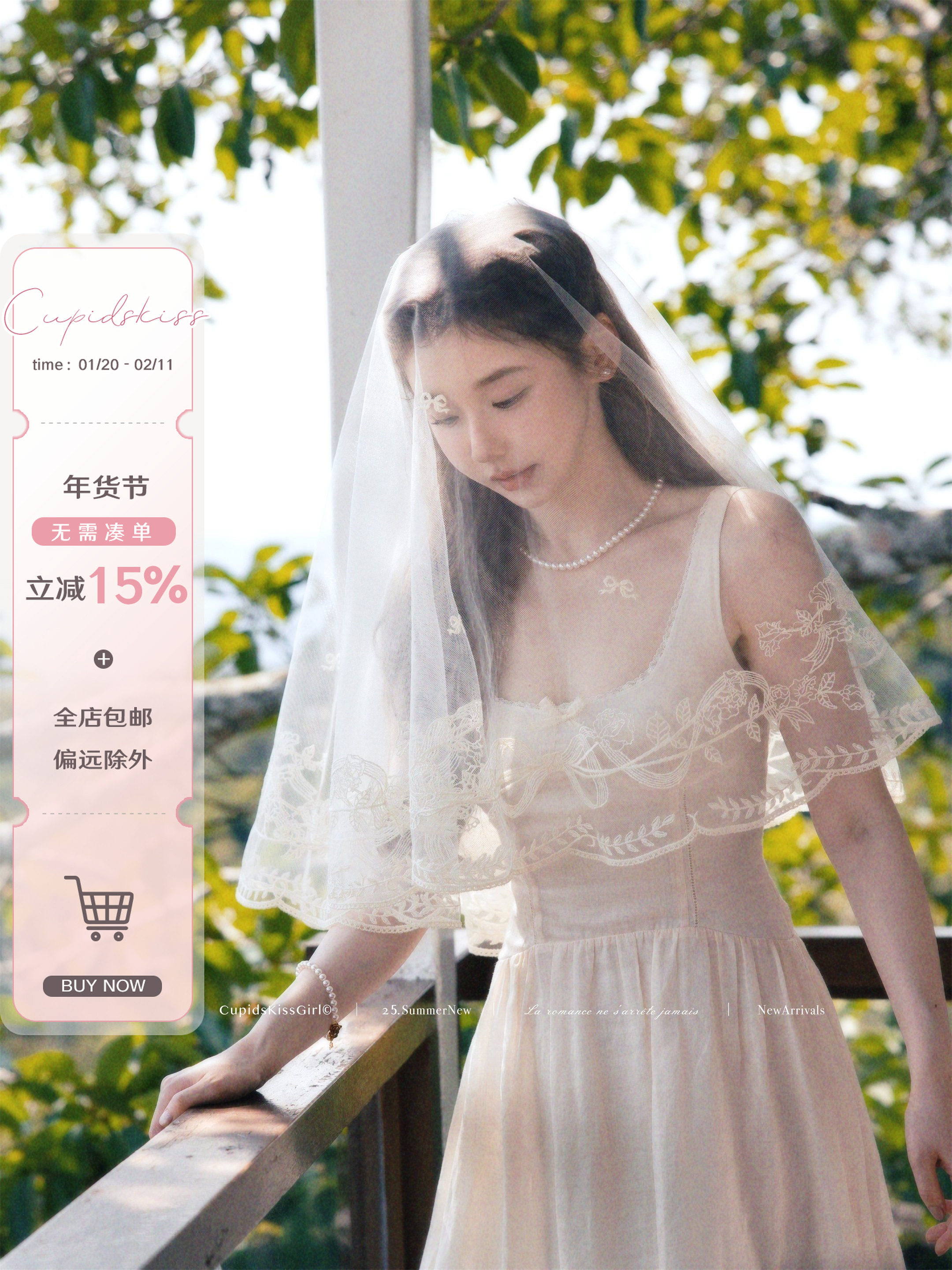 Csk Cupid's "Daily French Long Dress" Is an Elegant, Slimming, Waist-Cinching Dress for Women with Lace Embroidery and Spaghetti Straps