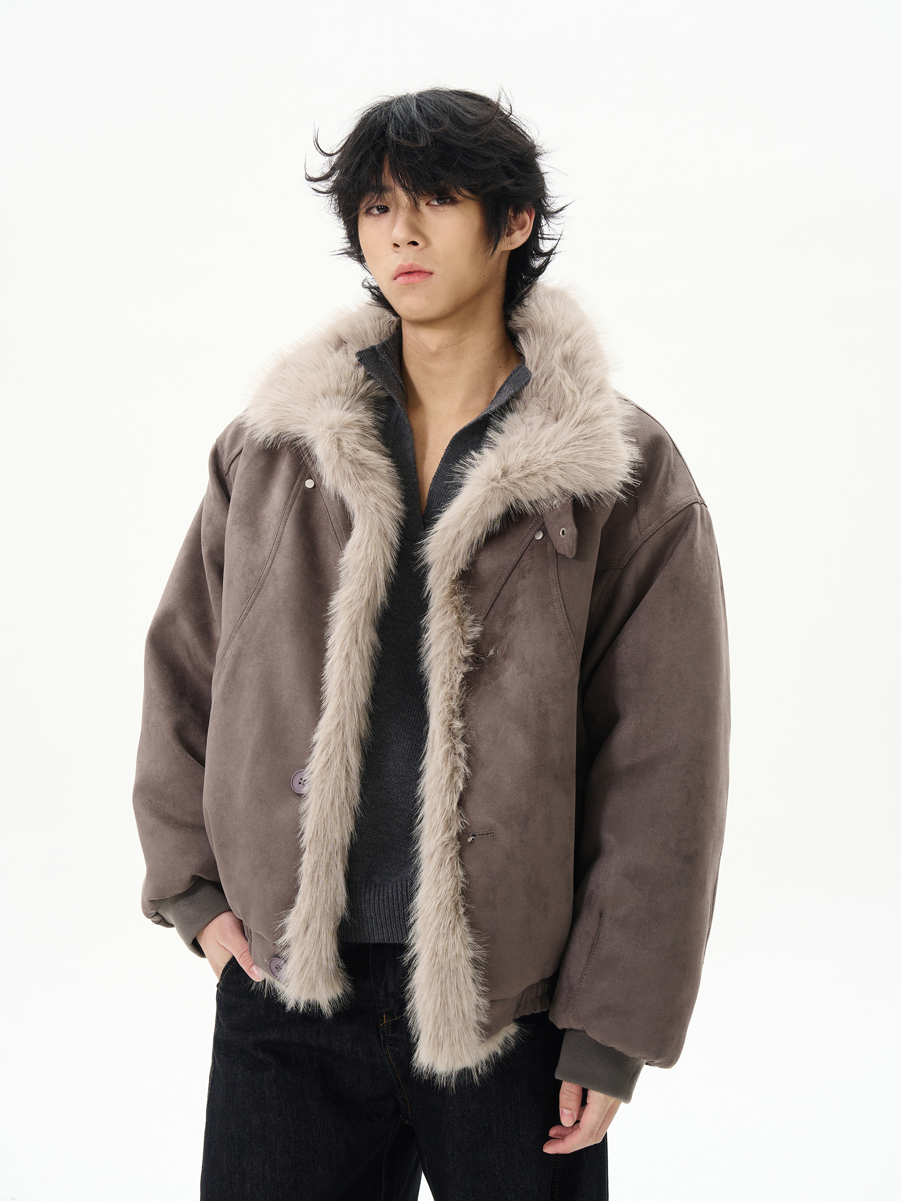 Tailang's Shop Winter Mountain Eagle Cotton Jacket for Men, High-End, Cool and Stylish, Suede Fur Coat, Jacket, Couple's Trendy Style