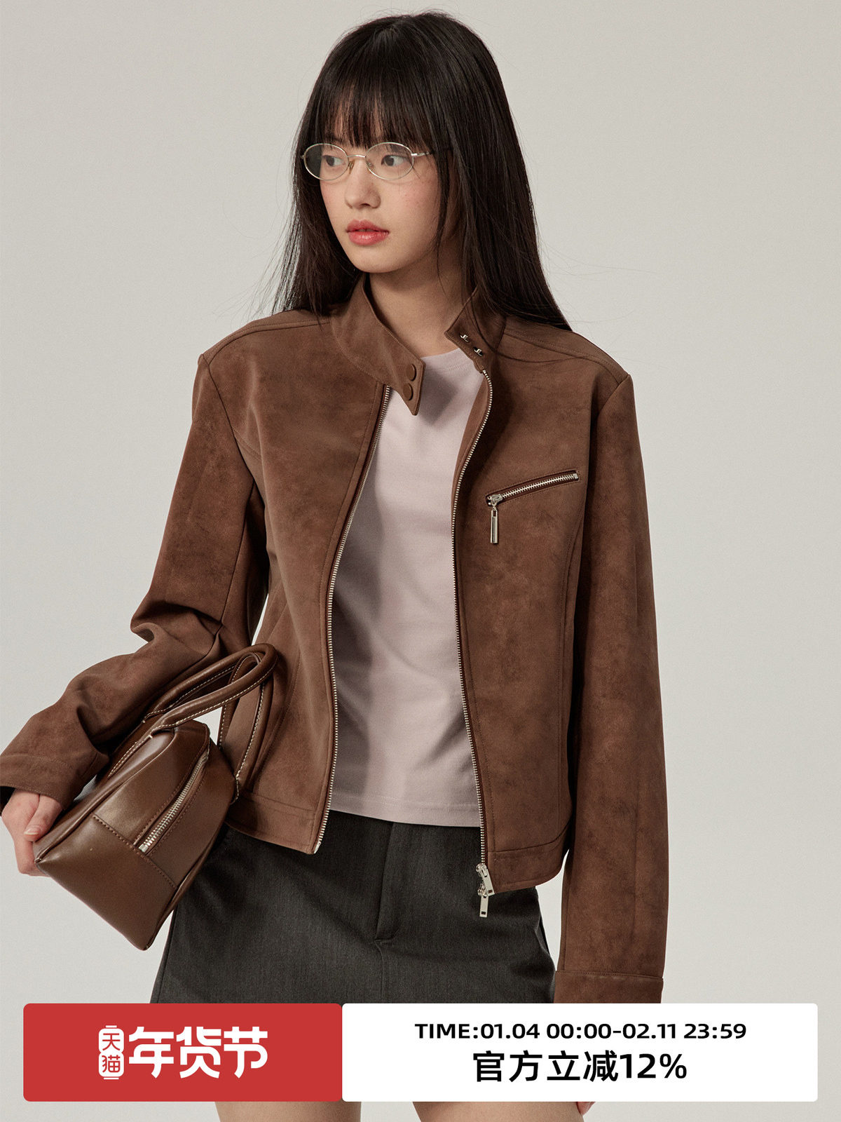 Omont Egg Tart House Retro Suede Stand Collar Biker Jacket 2025 Autumn Casual Versatile Zipper Jacket Leather Coat