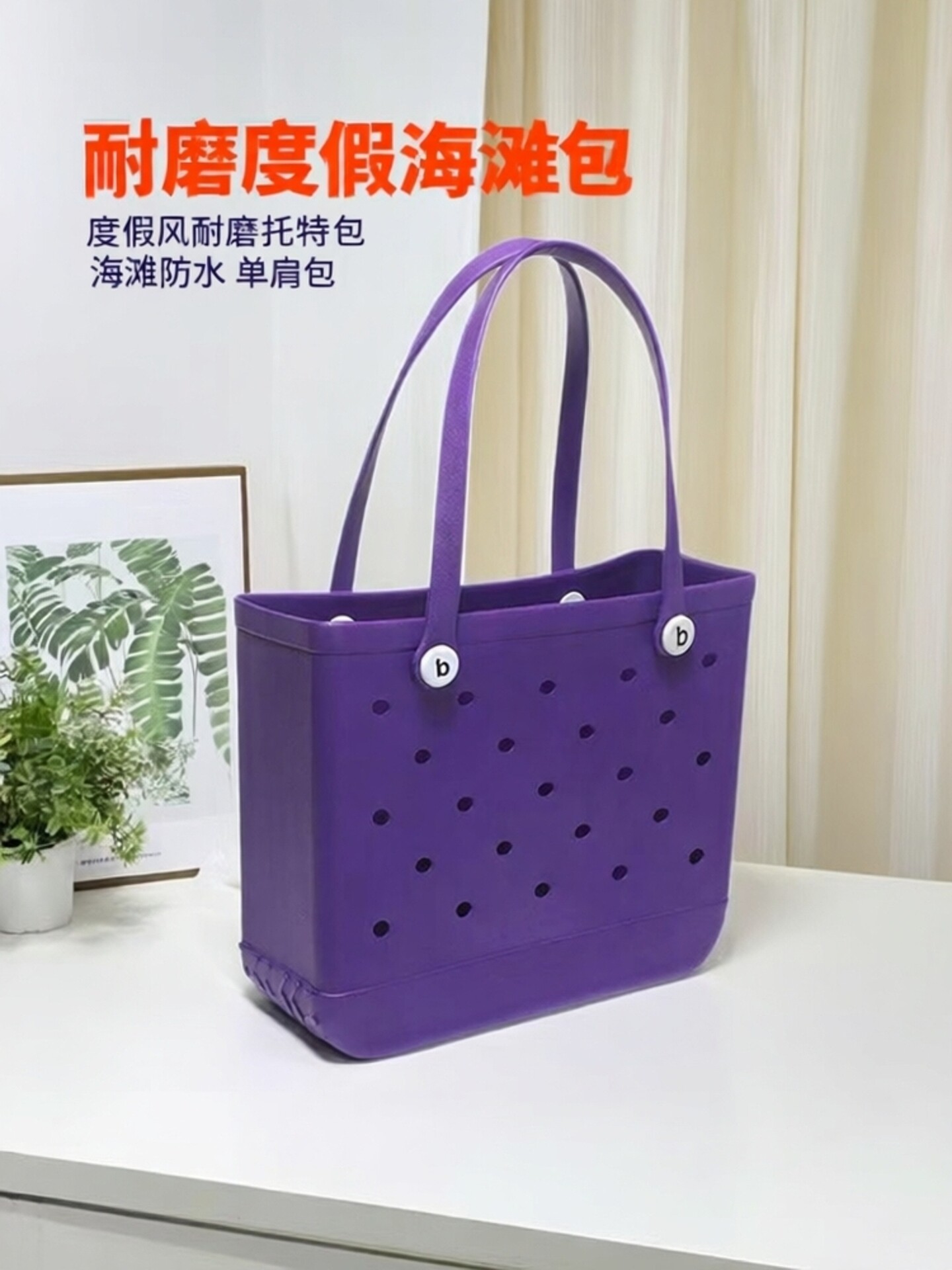 Beach Vacation Eva Hole Bag, Shoulder Bag, Handbag, Storage Bag, Waterproof and Wear-Resistant Swimming Beach Bag, Grocery Bag