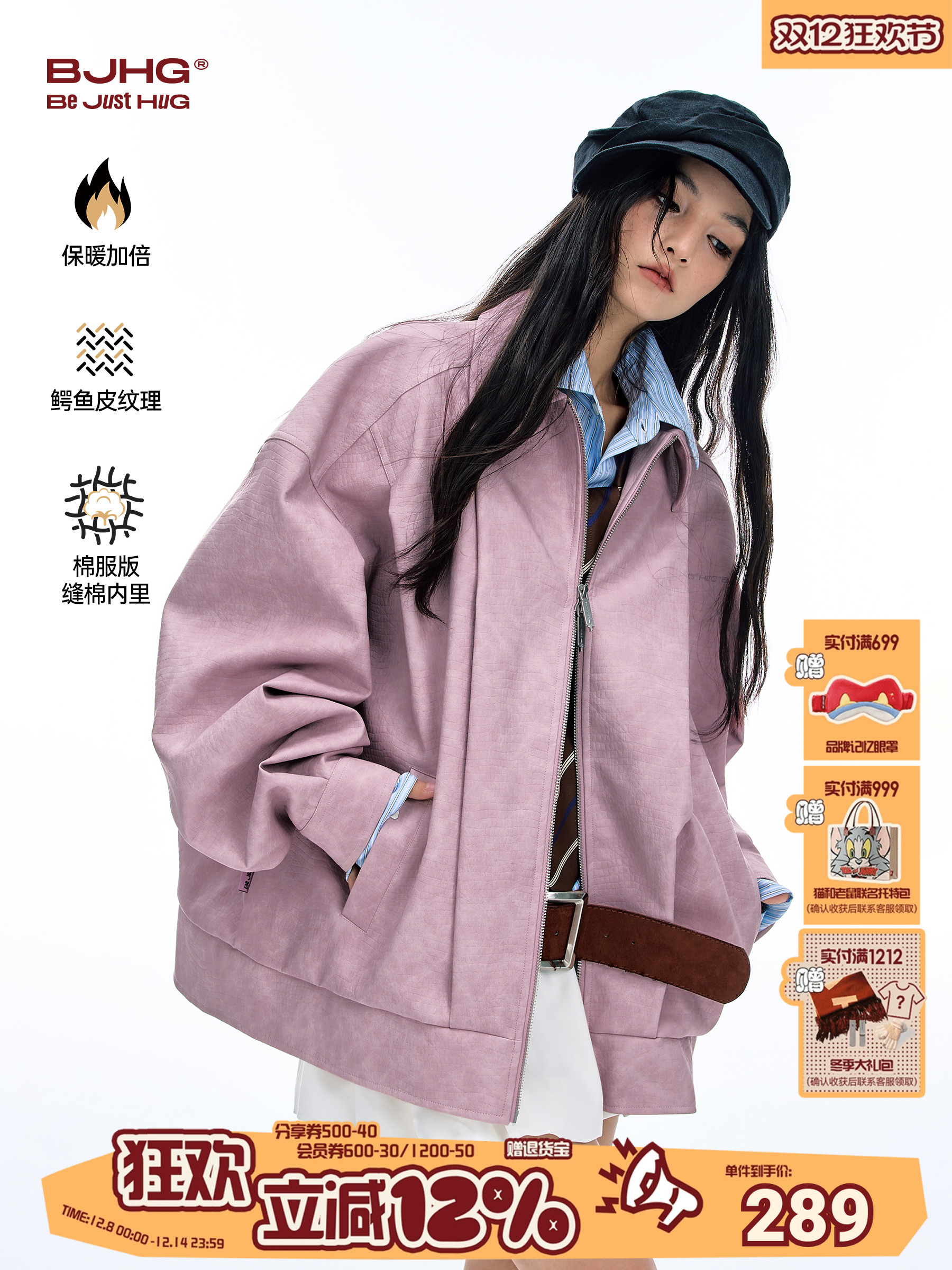 Lin Qiannan's Same Style Bjhg Reckless Crocodile-Patterned Leather Jacket, Cotton-Padded Coat for Men and Women, Thickened Winter Jacket, Padded Jacket