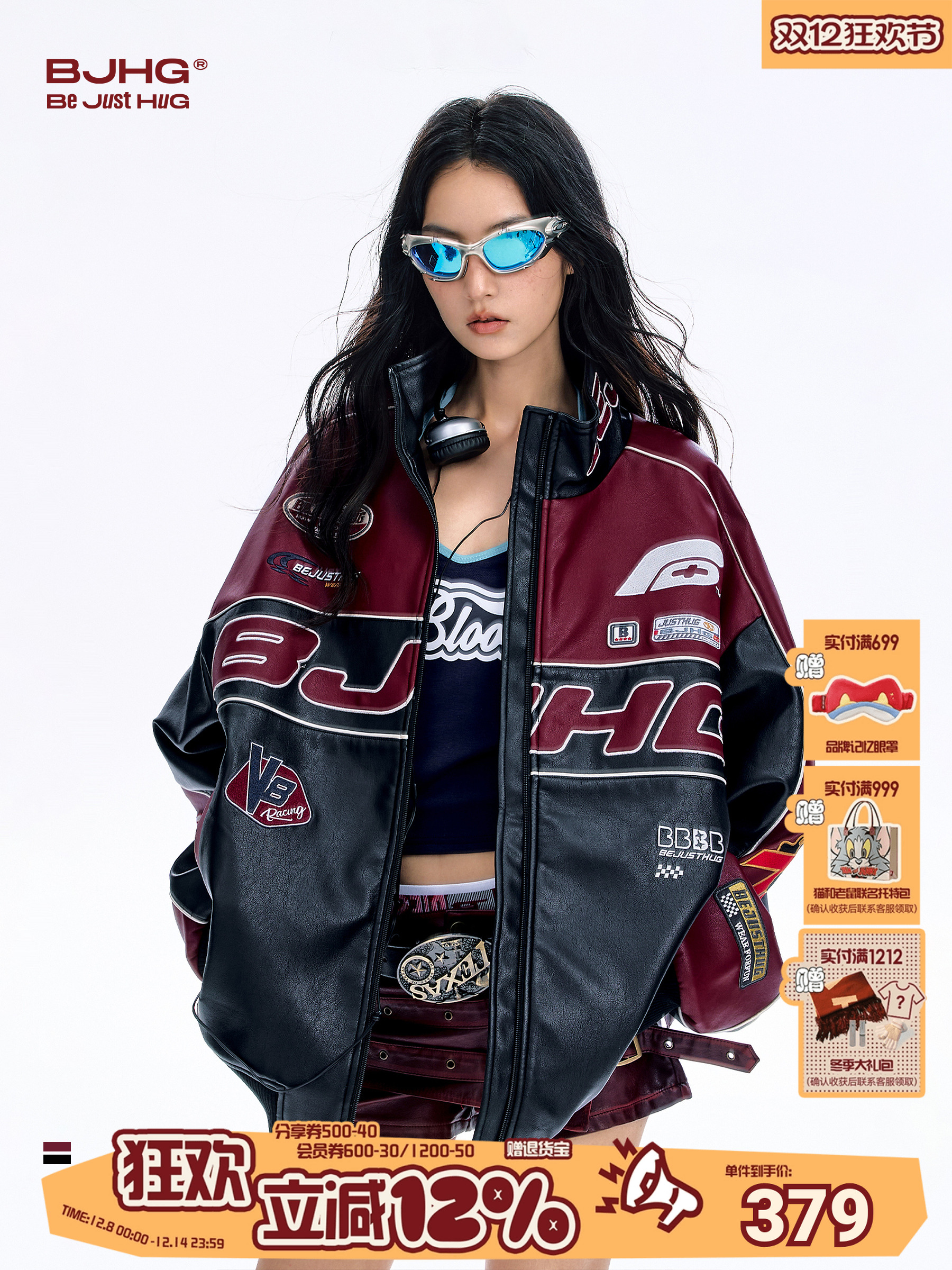 Bjhg Reckless American-Style Motorcycle Leather Jacket for Men, 2025 New Winter Lychee Pattern Racing Jacket for Women