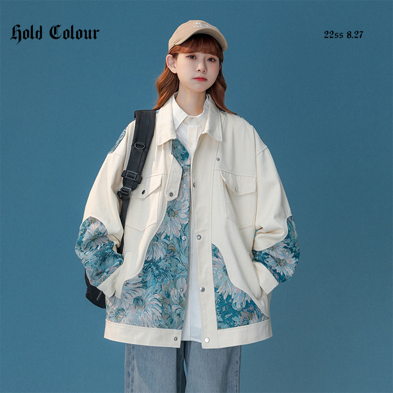 Hold Color American-Style Trendy Brand Small Daisy Pattern Patchwork Workwear Jacket for Men and Women ins Trendy Couple's Jacket
