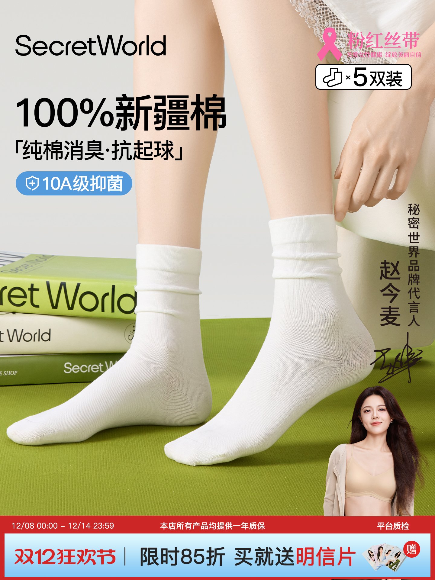 [Same Style as Zhao Jinmai] Women's Pure Cotton Mid-Calf Socks for Autumn and Winter, Antibacterial, Odor-Resistant, Sweat-Absorbent, Breathable, Slouch Socks
