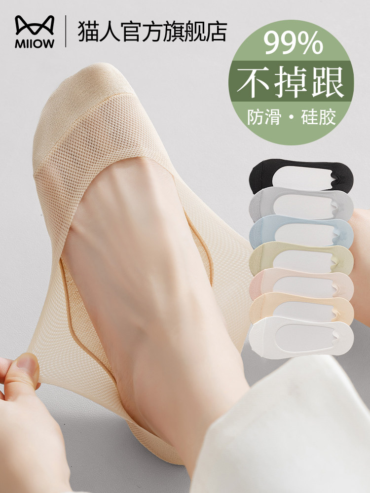 Cat-Themed Women's Socks, Summer Thin Non-Slip No-Show Socks, 2025 New Popular Style, Shallow Mesh Invisible Short Socks