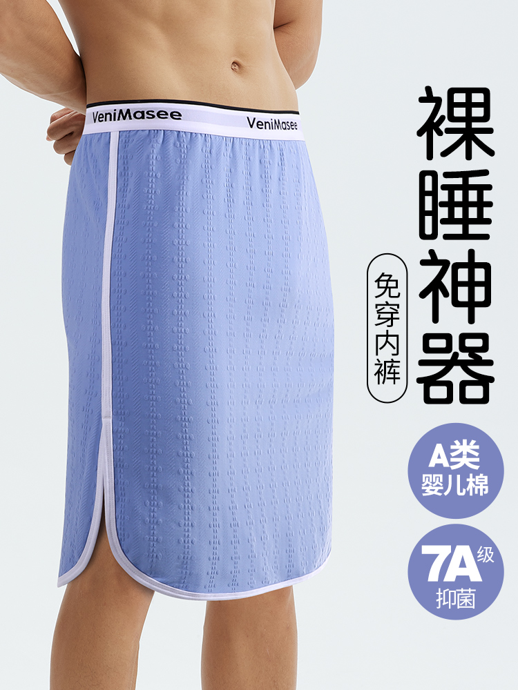 7A Antibacterial Sleep Skirt, Crotchless Sleep Pants for Men, No Need to Wear Underwear, Loose-Fitting Sleep Skirt, Half-Body Apron, Seamless for Summer