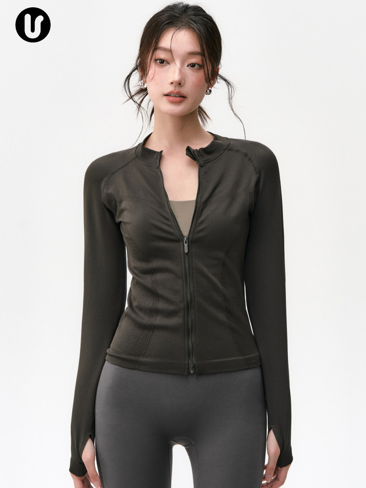 Sports Jacket for Women, Autumn and Winter New Style, Slim Fit Running and Cycling Fitness Top, Quick-Drying Yoga Wear, Black Long-Sleeved Suit