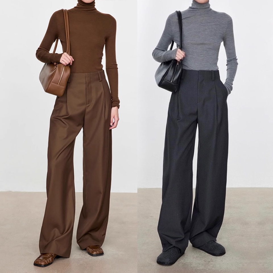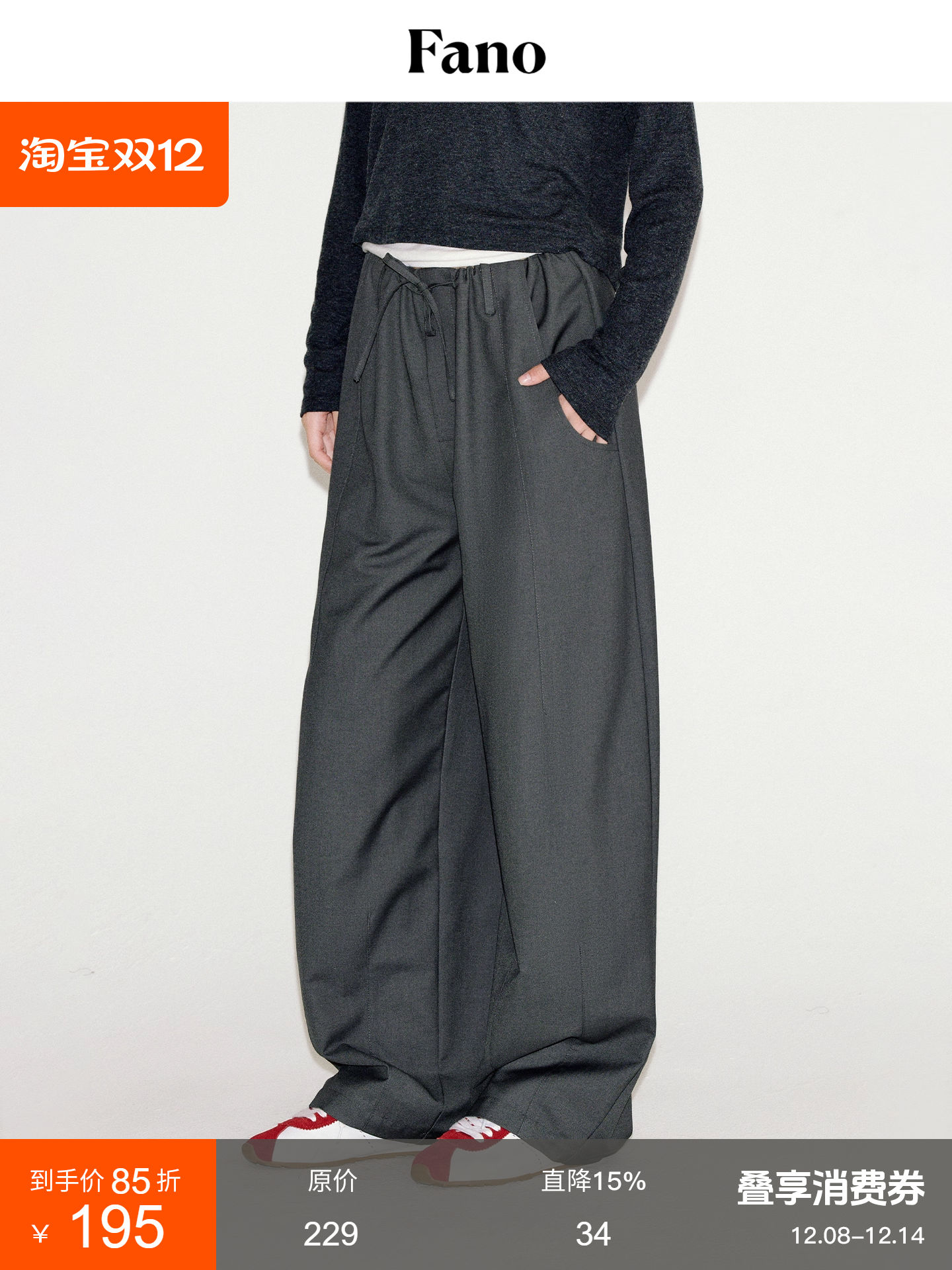 Fano Free-Spirited Casual Relaxed Pleated Silhouette Waistless Scimitar Gray Drape Suit Pants for Women Autumn
