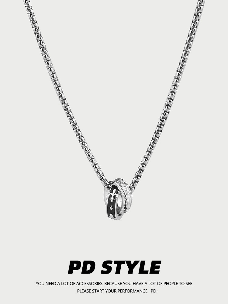 Pdstyle Black and White Clover Letter Double Ring Necklace, Light Luxury Niche ins High-End Sweater Chain for Men and Women, Trendy