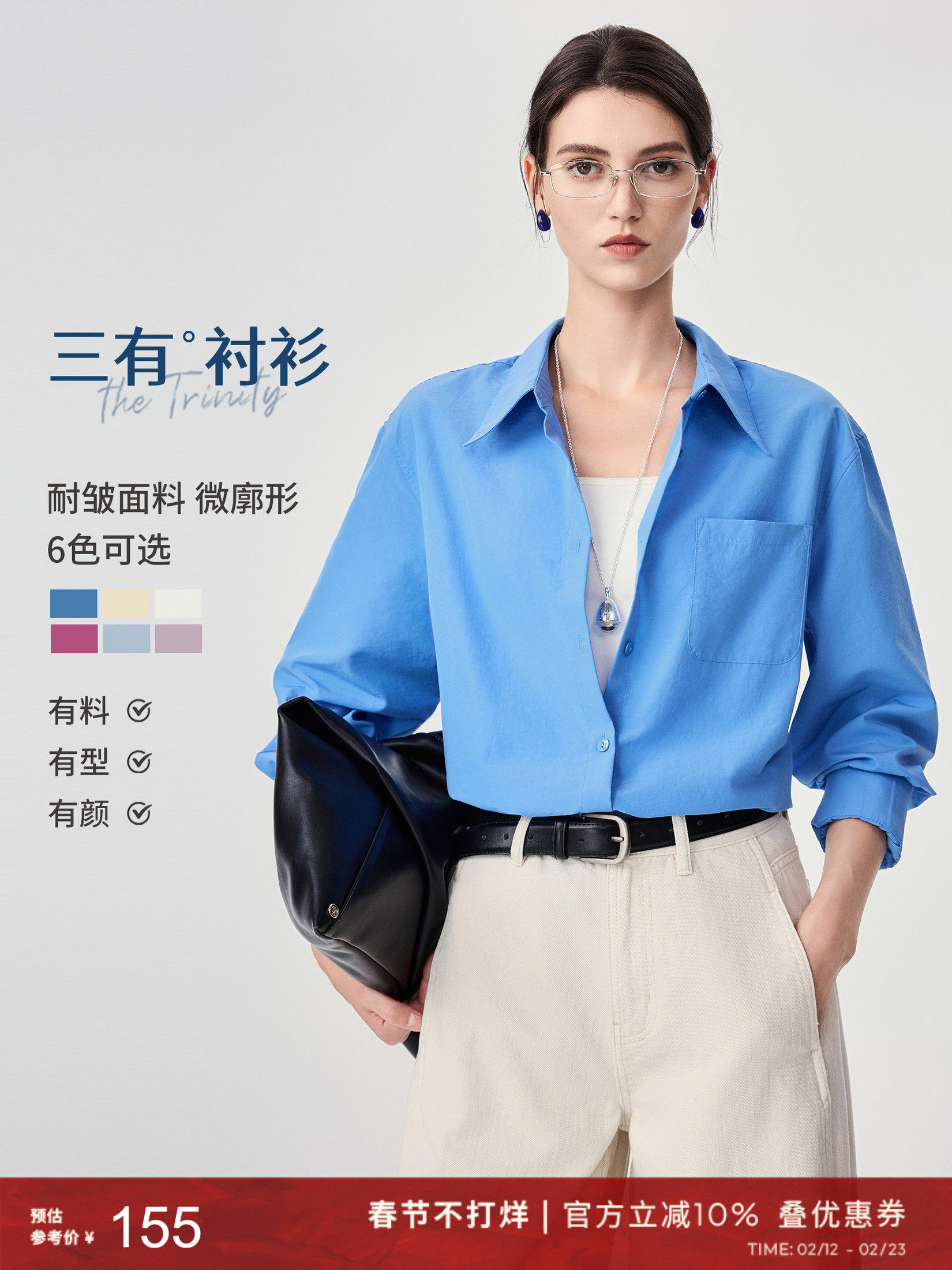 French-Style Pointed Collar High-End Blue Long-Sleeve Shirt for Women, Spring 26, Slightly Loose, Layered Casual Shirt, Wrinkle-Resistant