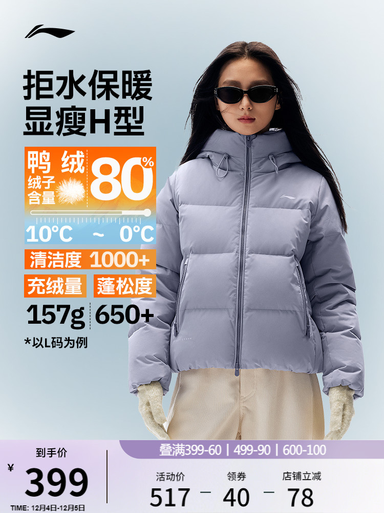 Li-Ning Hot Pot down Jacket | Women's Winter New Hooded Short Top Duck down Clothing Women's Warm Sports Coat