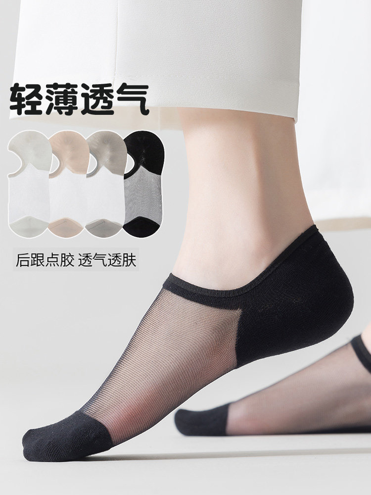 Ultra-Thin Crystal Silk Breathable Short Socks for Women, Summer Cool Hollow-Out Low-Cut Socks, Non-Slip, No-Show Women's Invisible Boat Socks