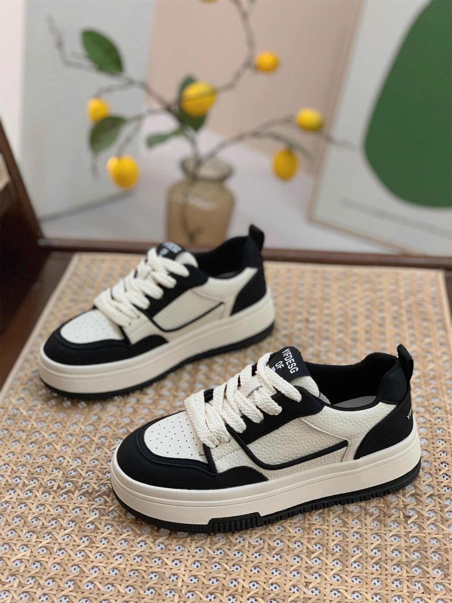 Hong Kong Genuine Leather Casual Sneakers for Women 2025 Spring and Autumn New Thick-Soled Black and White Panda White Shoes Versatile Loafers
