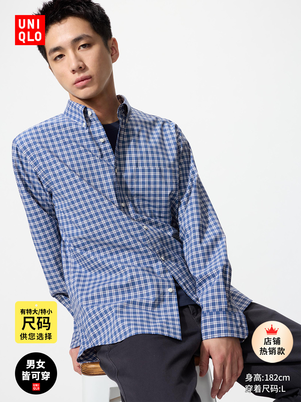 Uniqlo Men's and Women's High-Quality Long-Staple Cotton Plaid Shirt Long-Sleeved Casual Shirt Pure Cotton 483136 476016