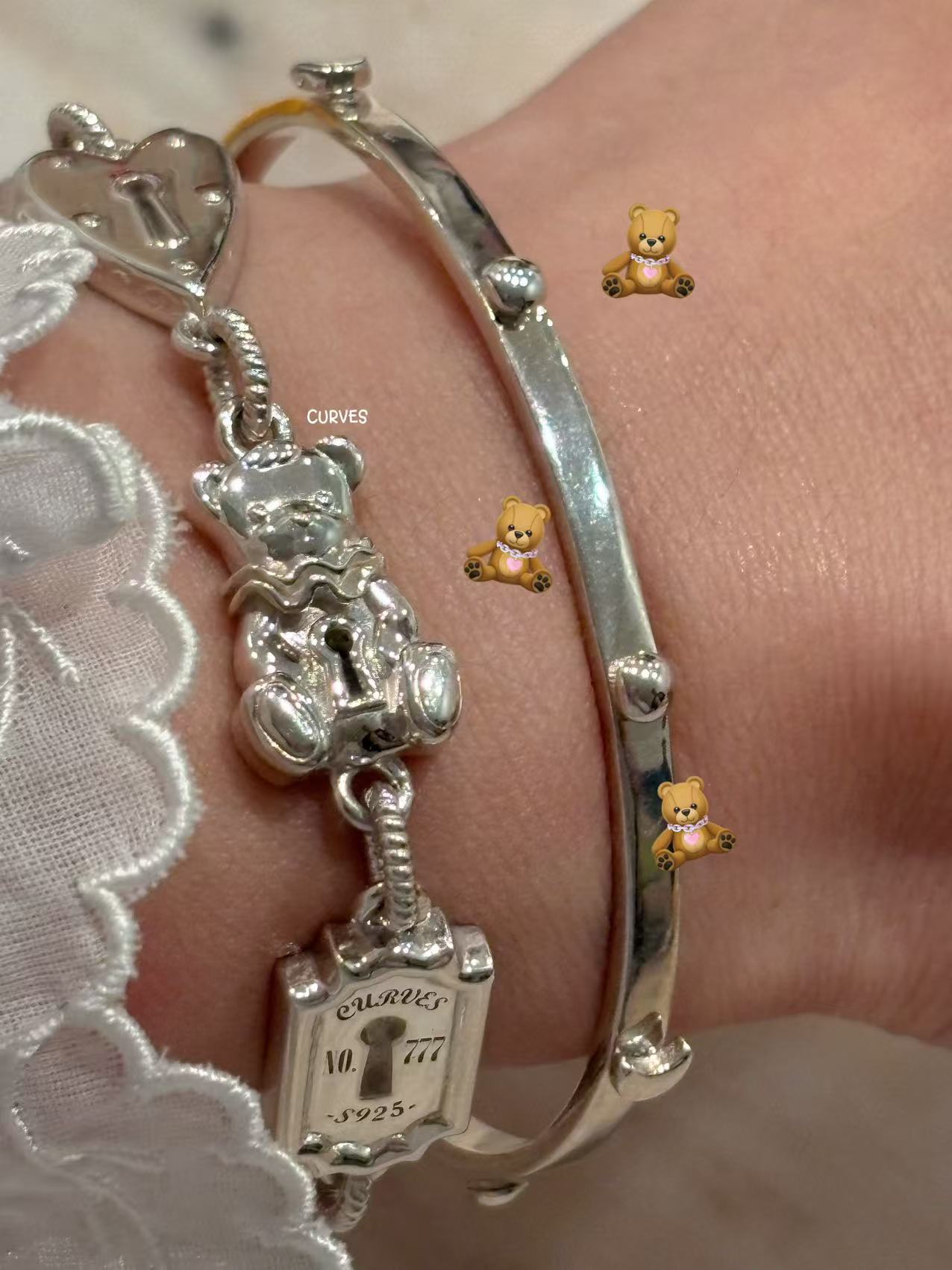 Curves Original Niche Gorgeous and Cute Heavy-Duty Bear Key Lock S925 Sterling Silver Bracelet