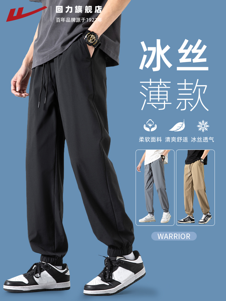 Pull-Back Sports Pants for Men, Summer Thin Style, Jogger Quick-Dry Ice Silk Pants, Workwear, Straight-Leg Casual Long Pants for Men