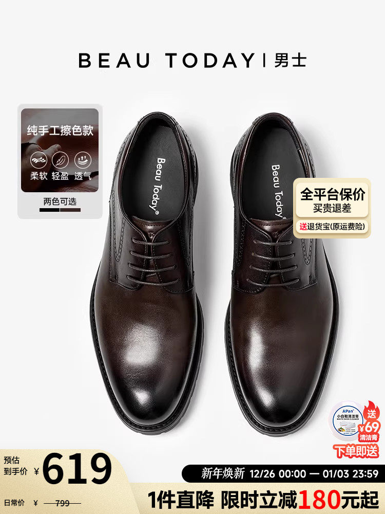 [Same Style as in Shopping Malls] Beautoday Leather Shoes for Men, Formal Business Derby Shoes, High-End Wedding Groom Shoes