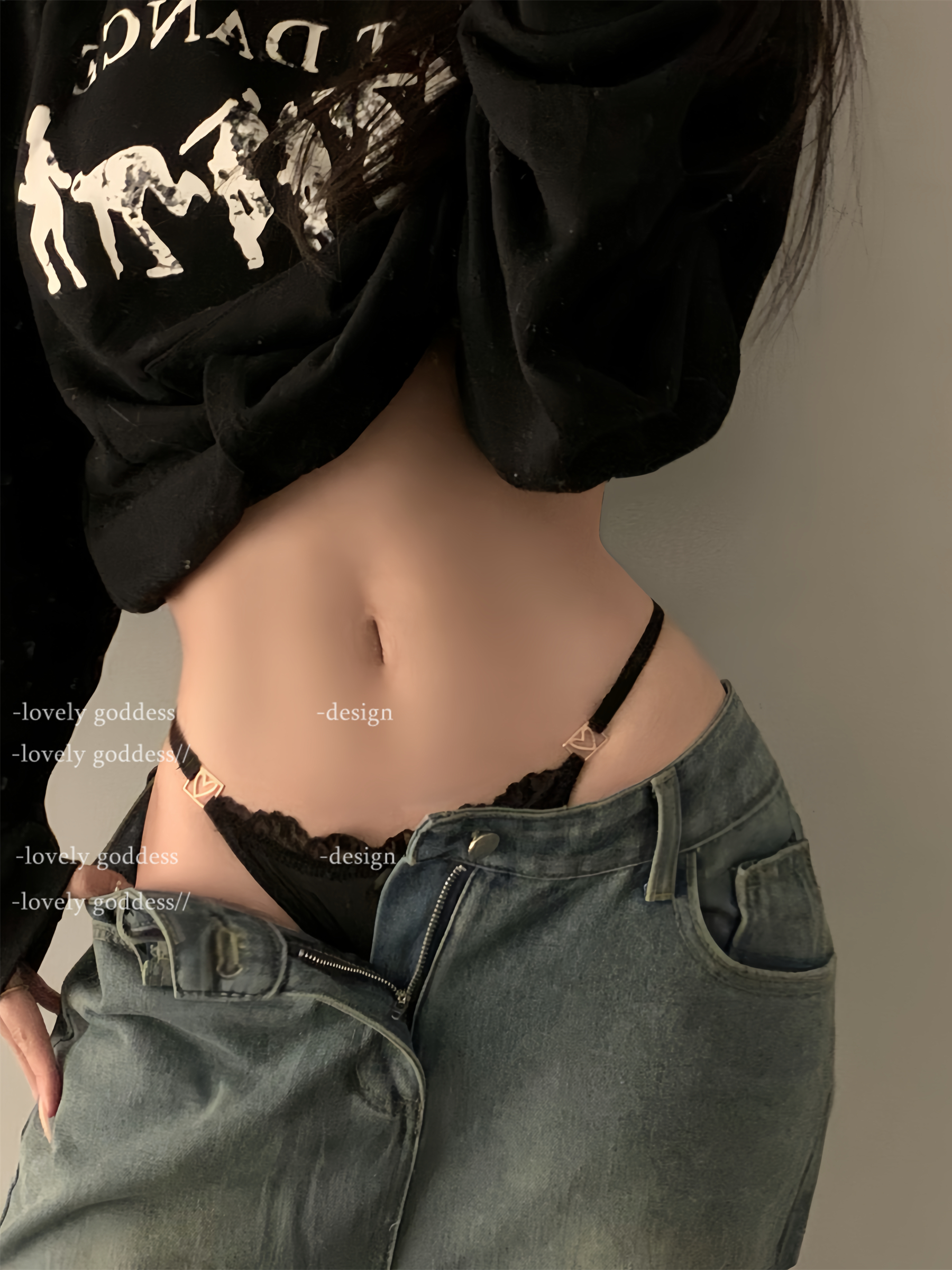 「Lg」Slightly Drunk Zebra* Sexy Leopard Print Lace Strap Panties Women's Pure Desire Ice Silk T-Pants Lace Trim Triangle Panties Women